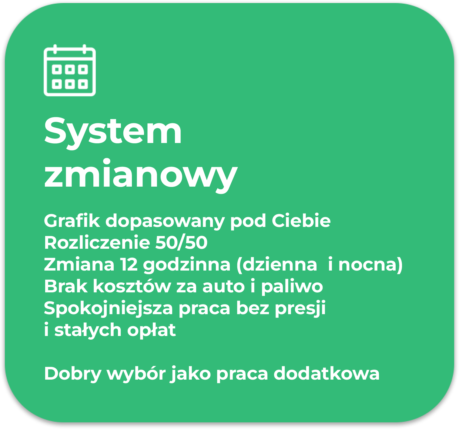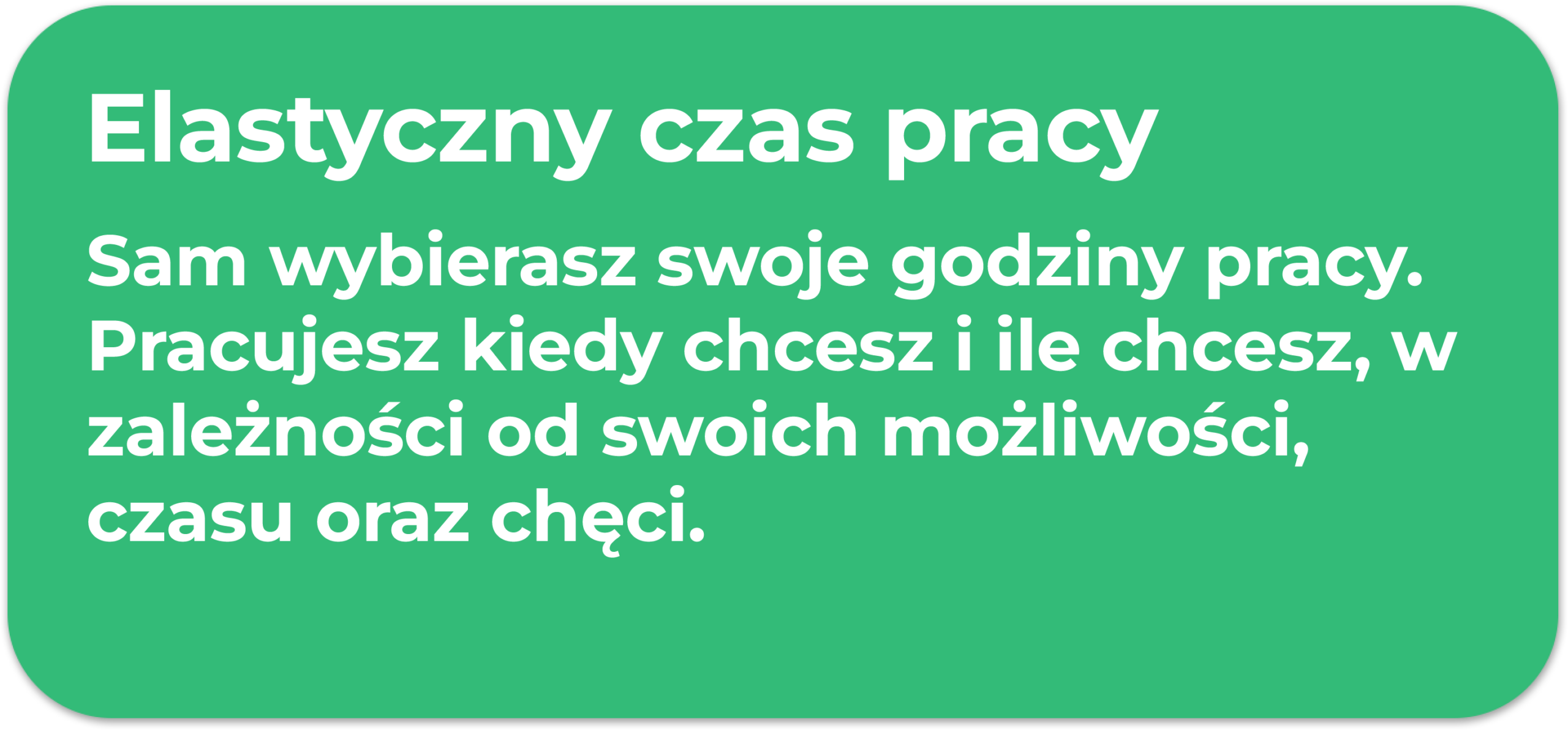Twoje zarobki są uzależnione od tego ile sam chcesz lub możesz pracować w danym tygodniu. Ty jesteś sam dla siebie szefem!